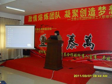 培訓(xùn)開始,公司的幾位部門主管上臺(tái)致辭,向新員工表示歡迎。希望員工們通過(guò)這次培訓(xùn),能逐步加深對(duì)企業(yè)的熟知度和認(rèn)同感,在各自的崗位上勤懇努力,為企業(yè)發(fā)展注入了新的活力。人力資源部的老同事們則為大家詳細(xì)介紹了萬(wàn)泰的發(fā)展歷程,公司文化,公司環(huán)境,未來(lái)發(fā)展規(guī)劃等等,并對(duì)萬(wàn)泰產(chǎn)品的行業(yè)應(yīng)用做了簡(jiǎn)單的介紹。